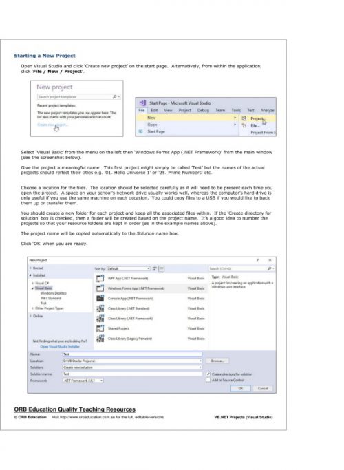 Our VB projects take VB.NET programming into its natural environment. By building small apps, solving problems and working out how each line of code works, students quickly develop knowledge that will be remembered. Working on the free versions of Visual Studio or VB Express, the projects supply goals, object names, properties, coding, design notes, questions, solutions and possible extension tasks.